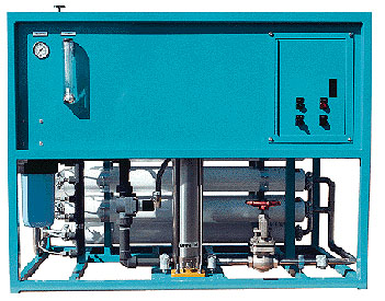 Este modelo de Osmosis Inversa para agua salobre produce 37,850 litros por dia de agua potable equivalente a 10,000 galones por dia .